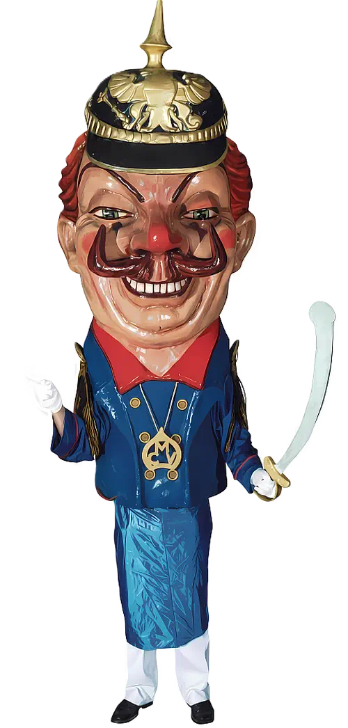 Der ganze Stolz der Familie: Butze, im bürgerlichen Leben auch als „Heine“ bekannt, ist der dienstälteste Ordnungshüter der Mainzer Altstadt – zumindest dem Anschein nach. Mit seiner markanten Uniform und dem leicht schrägen Blick patrouilliert er durch die Gassen, wobei sein Weg ihn zuverlässig in jede Kneipe führt. Dort wird ihm gerne ein „Halwe“ spendiert – nicht etwa aus Angst vor dem Gesetz, sondern in der Hoffnung, dass er ein Auge zudrückt. Und das tut er. Manchmal sogar beide.