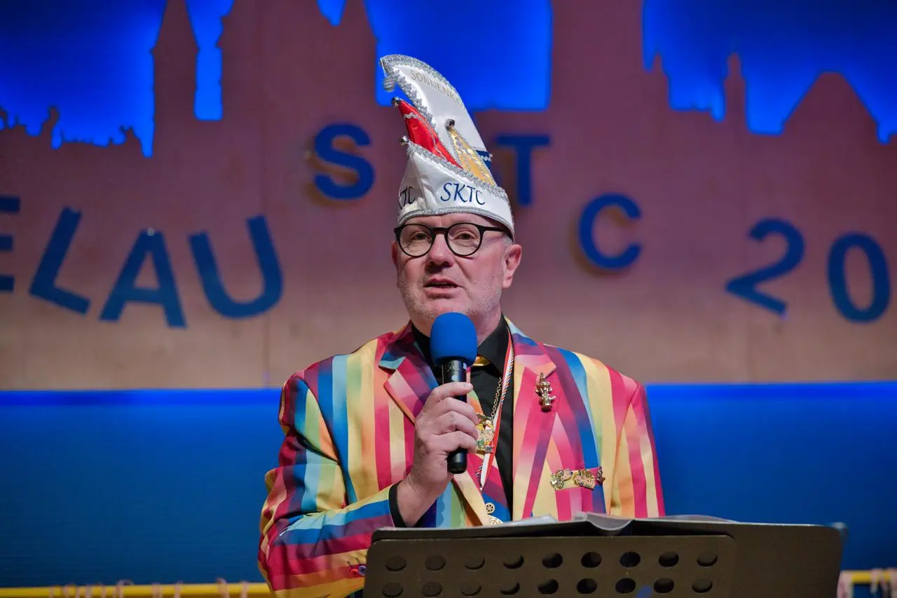 Dann kam der Moment, der den Saal zum Klingen brachte: SKTC‑Schwellkopp‑Koordinator Christian Thöma feierte Geburtstag. Der Sonnenkönig würdigte ihn mit einem kurzen, warmen Gruß – und der Saal tat, was ein Saal tun muss: Er sang. Laut, schief, aber voller Herz.